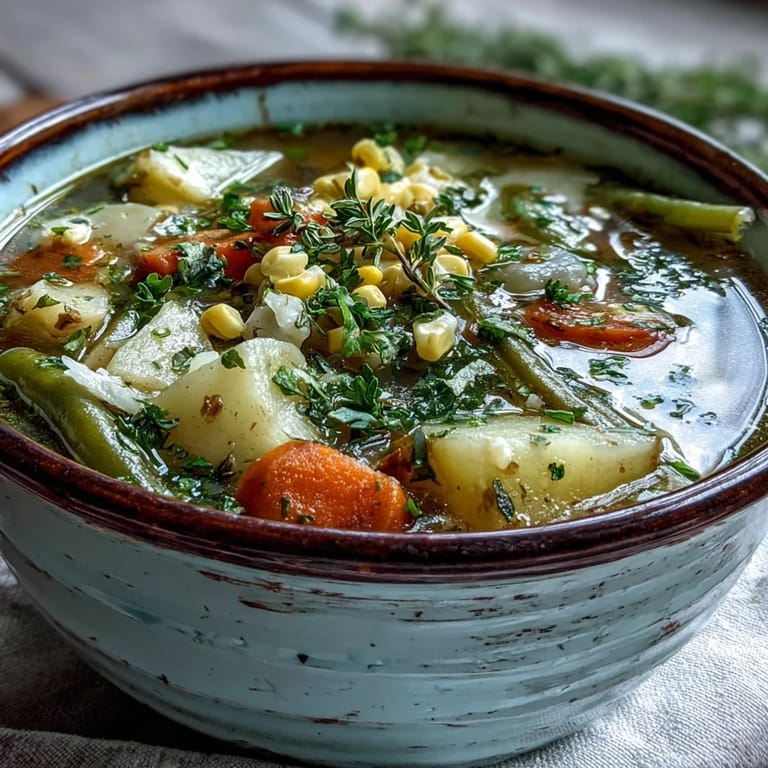 Save I started making this soup on a particularly gray Thursday afternoon when the pantry was half empty and the snow was piling up fast. There was something calming about chopping vegetables while the windows fogged over, the rhythmic thunk of the knife on the cutting board drowning out the wind. I had no plan, just a hunch that whatever was left in the crisper drawer could become something warm and filling. By the time the pot was simmering, the kitchen smelled like thyme and butter, and I realized I'd accidentally made something worth repeating. Now it's the soup I turn to when the world outside feels too cold and the world inside needs a little tending.