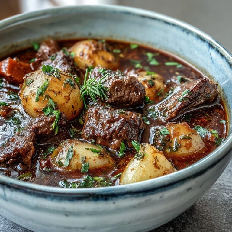 Save There's something about the smell of beef browning in a hot skillet that stops me mid-thought every time. Last November, I was rushing through prep work when my neighbor knocked on my door—the aroma had drifted into the hallway and she wanted to know what I was making. By the time I finished explaining, she'd invited herself to stay for dinner, and we spent the evening waiting for that stew to transform into something golden and tender. That's when I realized this recipe wasn't just about feeding people; it was about creating a reason for them to linger.