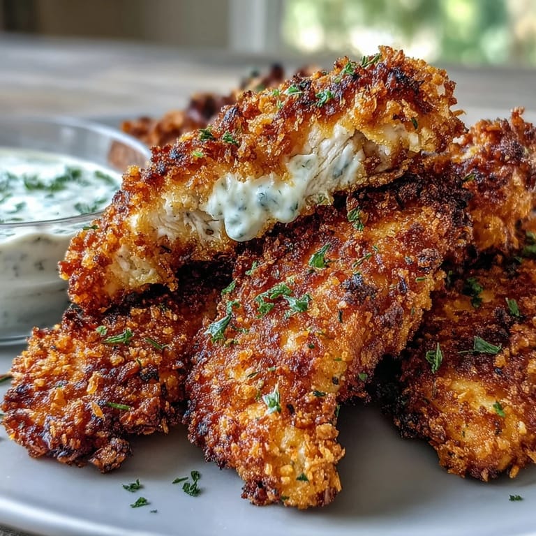 Save The combination of panko breadcrumbs and ranch seasoning creates a unique texture and taste profile. Unlike traditional breadcrumbs, panko stays incredibly light and crisp in the oven, while the herbs and spices in the ranch mix penetrate the chicken to keep every piece flavorful.