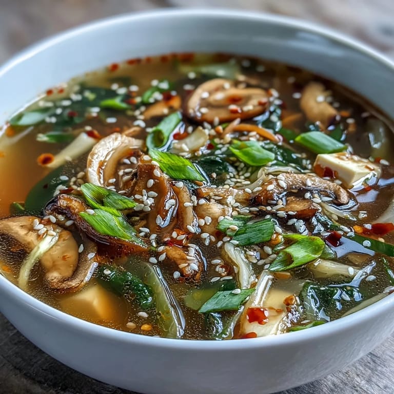 - Ladle into bowls and crown each one with scallions, sesame seeds, herbs, and a drizzle of chili oil. The garnishes aren't decoration—they're what make this soup feel special.