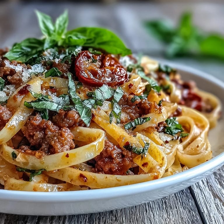 Save My neighbor Marco used to lean over the fence with a glass of Chianti in hand, insisting that wine belongs in the pan just as much as in the glass. One night I had leftover sausage, a basket of cherry tomatoes going soft, and half a bottle of red wine I didn't want to waste. I threw it all into a skillet with pasta, and the kitchen filled with this intoxicating, garlicky, wine-soaked aroma that made me call him over immediately. He took one bite, laughed, and said it tasted like Italy got into a happy argument with a noodle bowl.