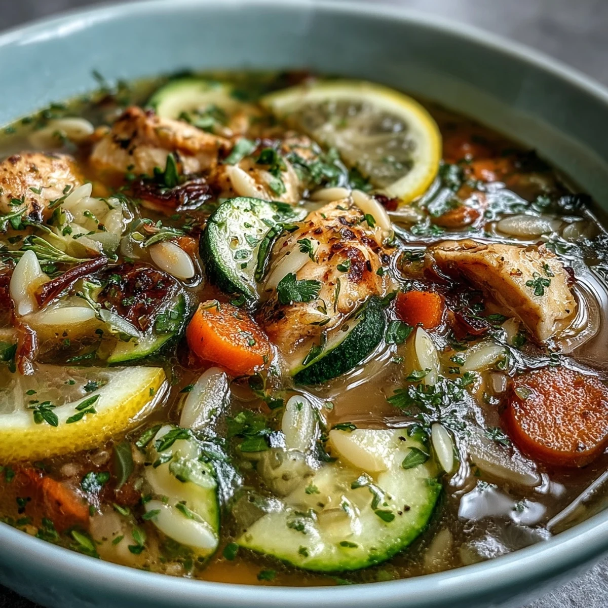 Save There's something almost magical about the moment a simple pot of broth transforms into something that smells like pure comfort. I discovered this lemon chicken and zucchini orzo soup on a Tuesday when I was standing in my kitchen with three ingredients and absolutely no plan, just the vague memory of wanting something bright and warm at the same time. The lemon does the heavy lifting—it cuts through the richness and makes the whole thing sing like it's been simmering for hours, even though you'll have it ready in less than 45 minutes. It's become my go-to when I want to feel nourished without fussing, or when friends drop by and I want to prove I actually know how to cook.
