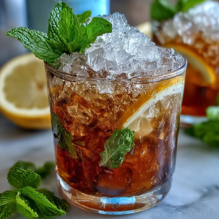 - Give everything a gentle stir to blend the flavors—you want the syrup to coat the ice evenly. Top with a fresh mint sprig and a lemon slice, then serve immediately with a straw so guests can sip slowly and savor each cool, refreshing moment.