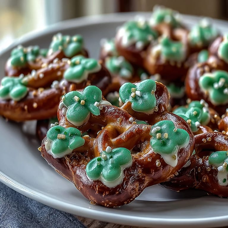 Save My kitchen smelled like melted candy and possibility when my neighbor stopped by with a bag of pretzel twists last March, asking if I could whip up something festive for her St. Patrick's Day potluck. I'd never made pretzel bites before, but watching those little twisted knots transform into shamrocks under a coat of emerald candy felt like pure magic. What started as a casual afternoon project became the thing everyone asked about for weeks afterward.
